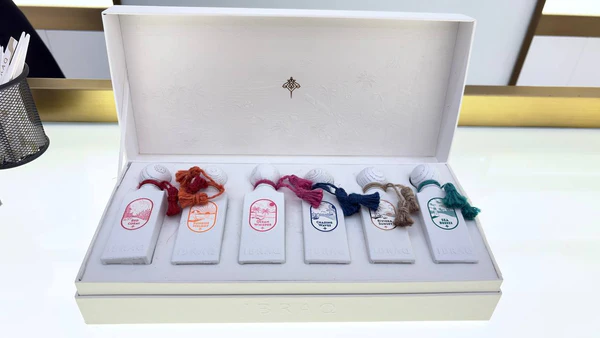 Jede 10-ml-Flasche ist eine Postkarte aus Duft. Damaszenerrose, die über sonnenbeschienene Gezeiten treibt, Gewürze, die auf windgejagten Wellen tanzen, Minze und Mandarine, die unter einem Riviera-Sonnenuntergang leuchten.