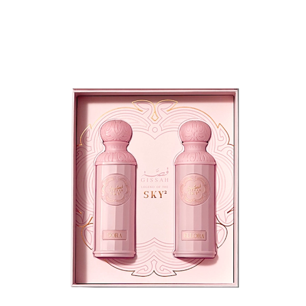 Ellora, eine fesselnde Komposition aus Zitrusnoten, Amber und Leder, sowie Sora, eine harmonische Verbindung aus fruchtigen, floralen und holzigen Nuancen. Erleben Sie Eleganz und Anmut mit jedem Sprühstoß.